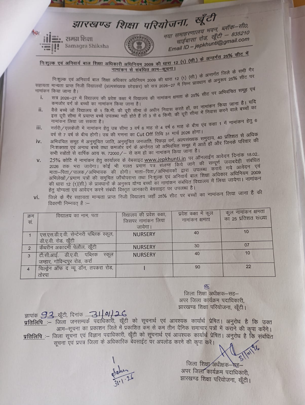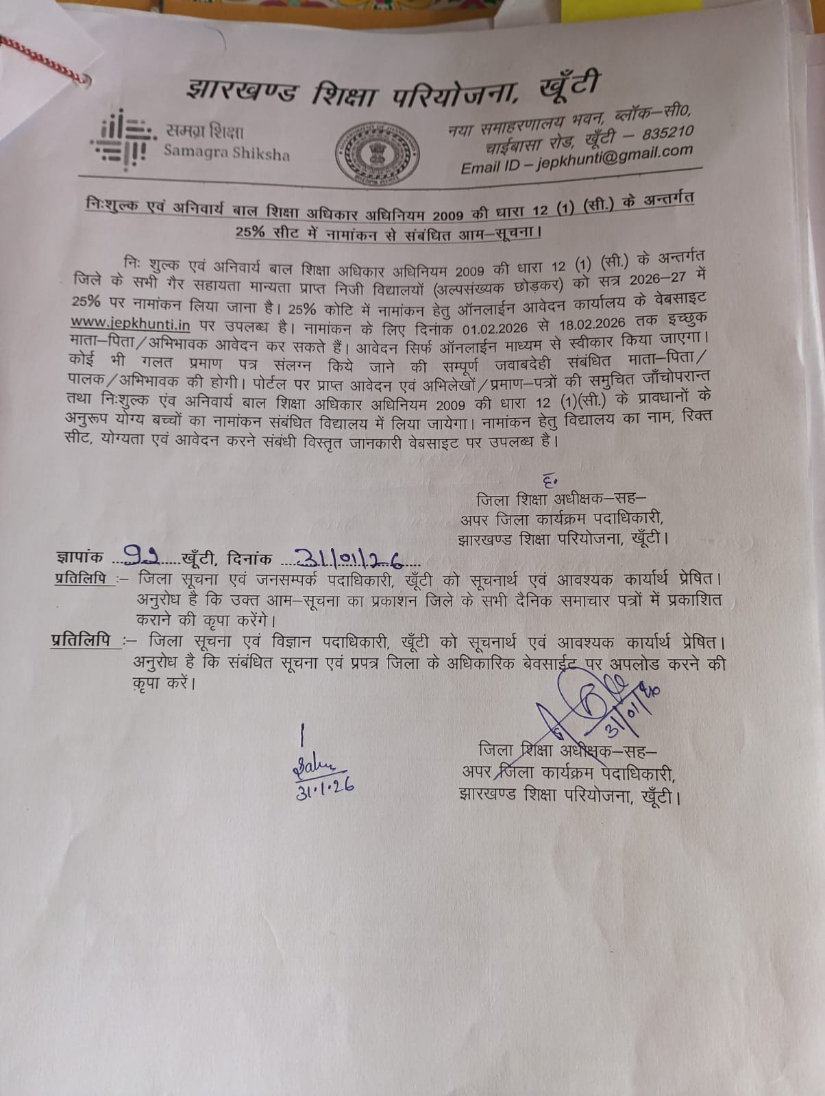 I urge all residents of Khunti to support this initiative and actively engage with the RTE portal. Together, let us work towards building a more inclusive and equitable education system that leaves no child behind.